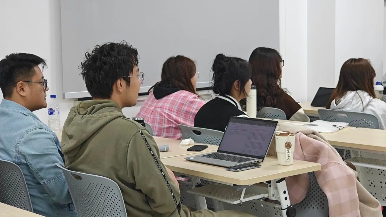 20:40,曲纵翔老师走进刚刚下课的教室,春雨打湿他的镜片,他顾不上擦眼镜,面向2021级公共管理类专业的“考研动员会”在丰台校区日新楼210教室正急着开始。