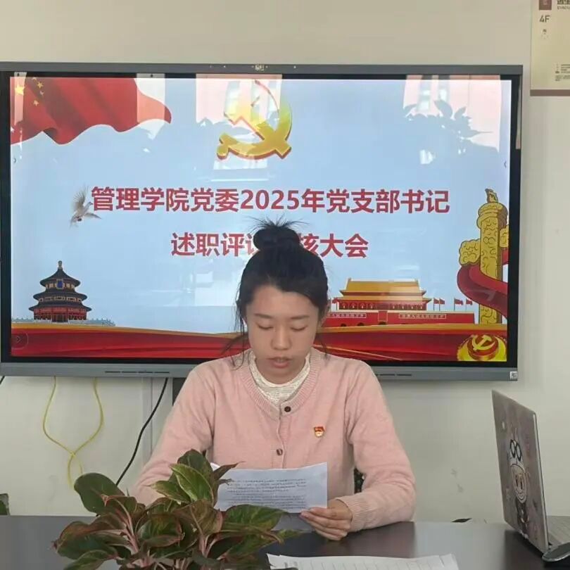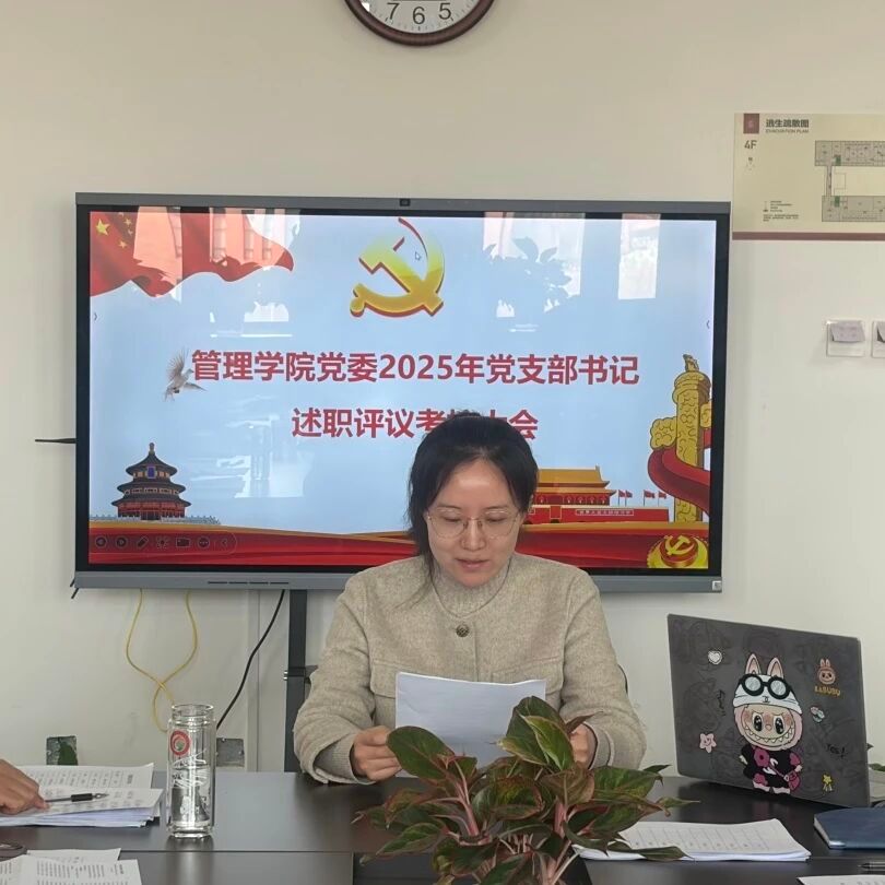 党委召开2025年度党支部书记述职考核评议会。学院党委书记闫建敏、组织员文杰、党委委员贺新闻、金红磊,以及各党支部书记、委员、党员、群众代表参加会议。会议由学院党委副书记姚远主持。