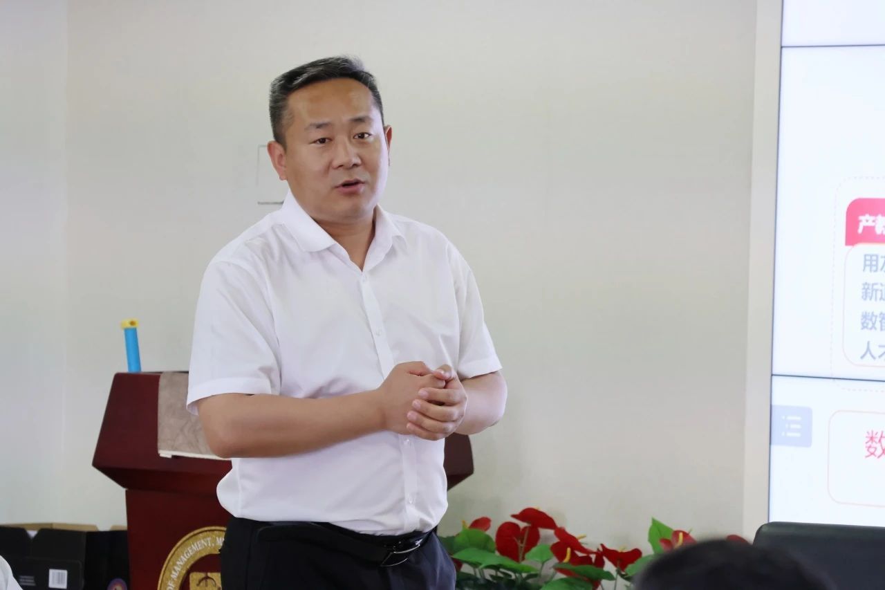 目前开设专业的教学现状做简要介绍。他对新道科技在培养数智化人才方面的理念和实践成果表示认可,并就创新实验中心建设与中华民族共同体建设的深度融合给出具体建议,表达了对双方合作的期待。