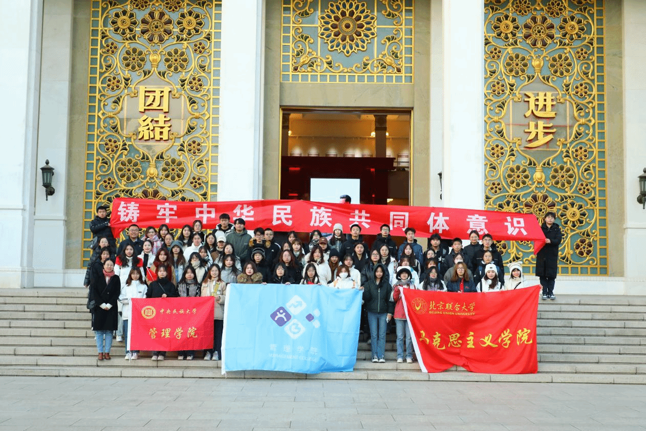 学生第一党支部、会计2305B班、马克思主义学院部分同学共同前往中华民族共同体体验馆和民族文化宫开展“讲好中华民族故事—同心绘就民族团结新图景”联学联建活动。