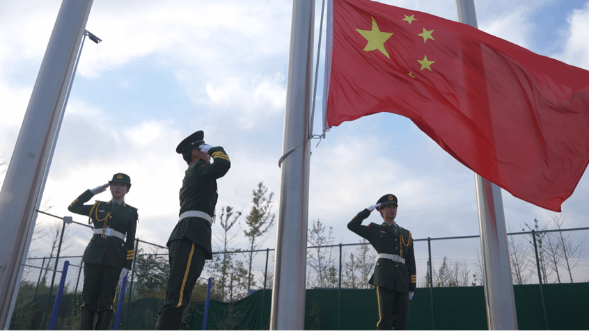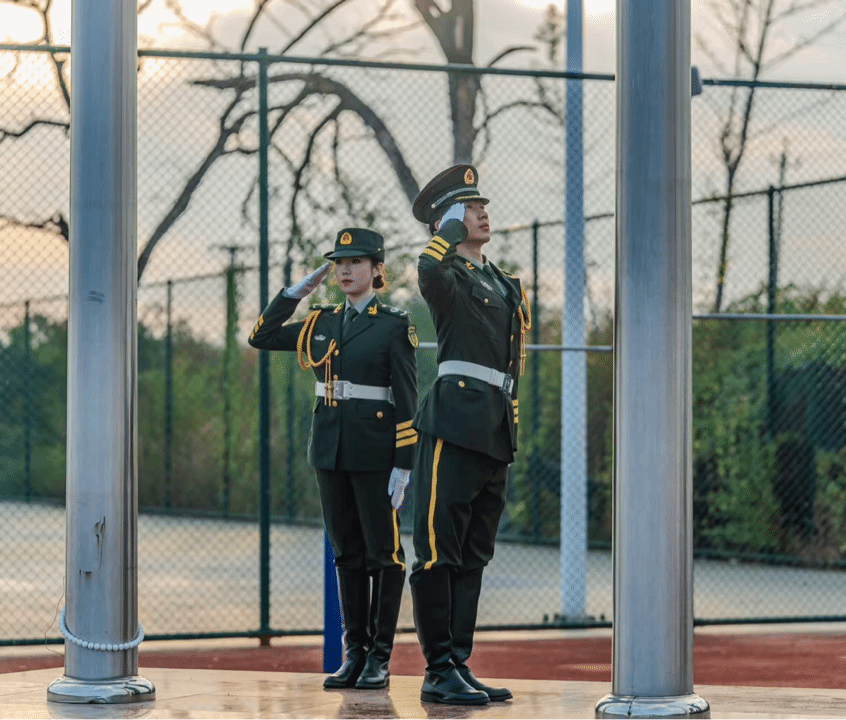 举行升旗仪式,同上一堂国旗下的“铸牢”思政课。秘密研究所